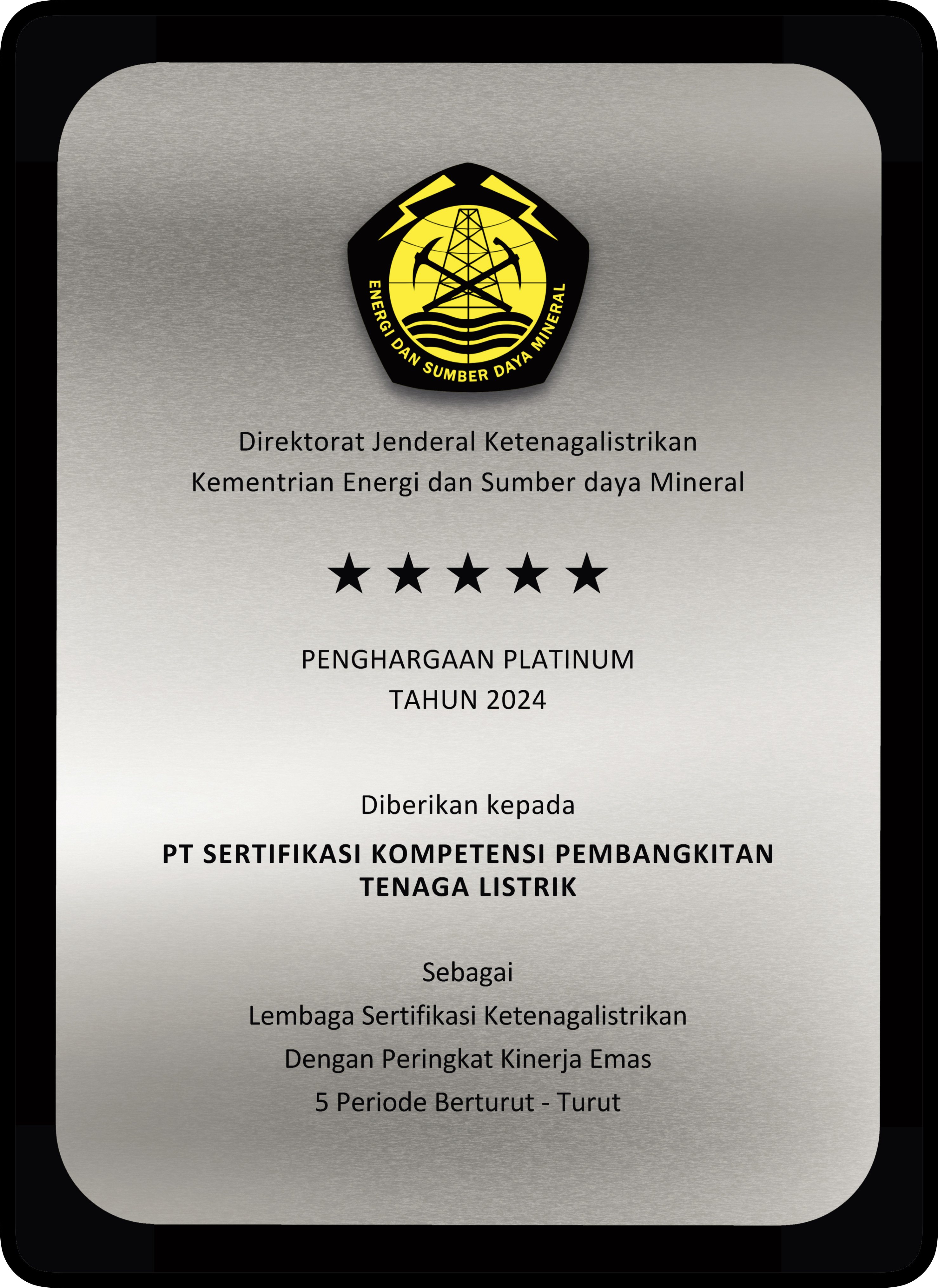 Sertifikat Penghargaan Kinerja Lembaga Sertifikasi Ketenagalistrikan Periode 2023-2024